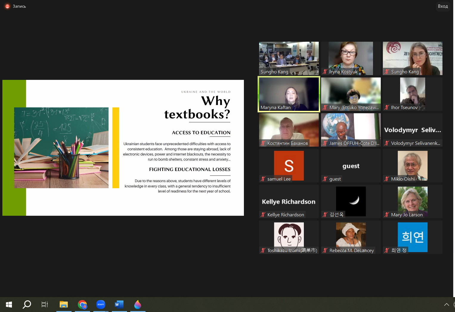 Також наприкінці виступу української групи була представлена програма вивчення історії Республіка Корея “Історія дива на річці Хан”, за авторством професора кафедри суспільствознавчої освіти, доктора педагогічних наук Костянтина Баханова, як курс історії за вибором для старших класів. Виступ українських панелістів викликав жваве зацікавлення, коментарі в чаті та чуттєву реакцію.