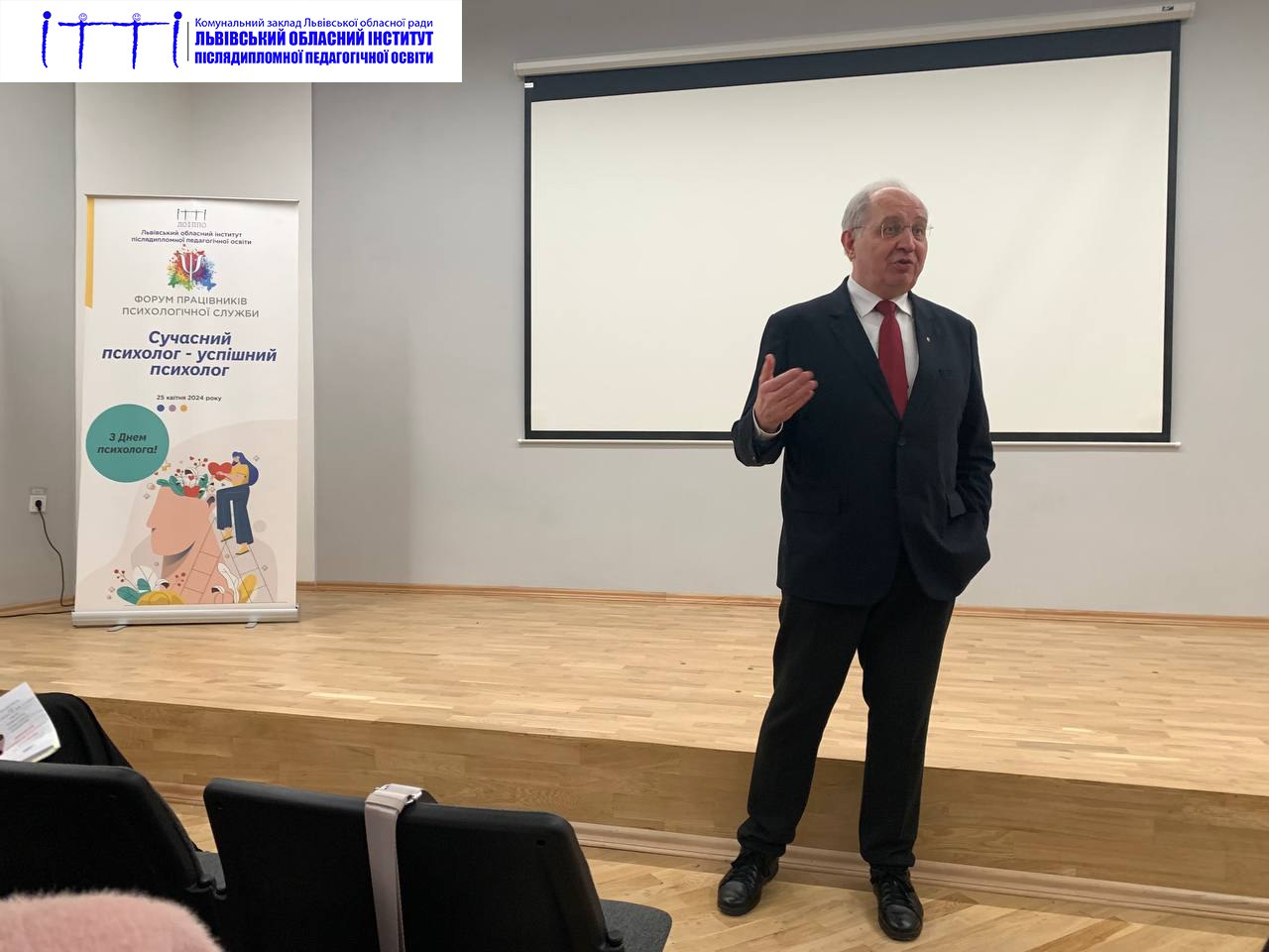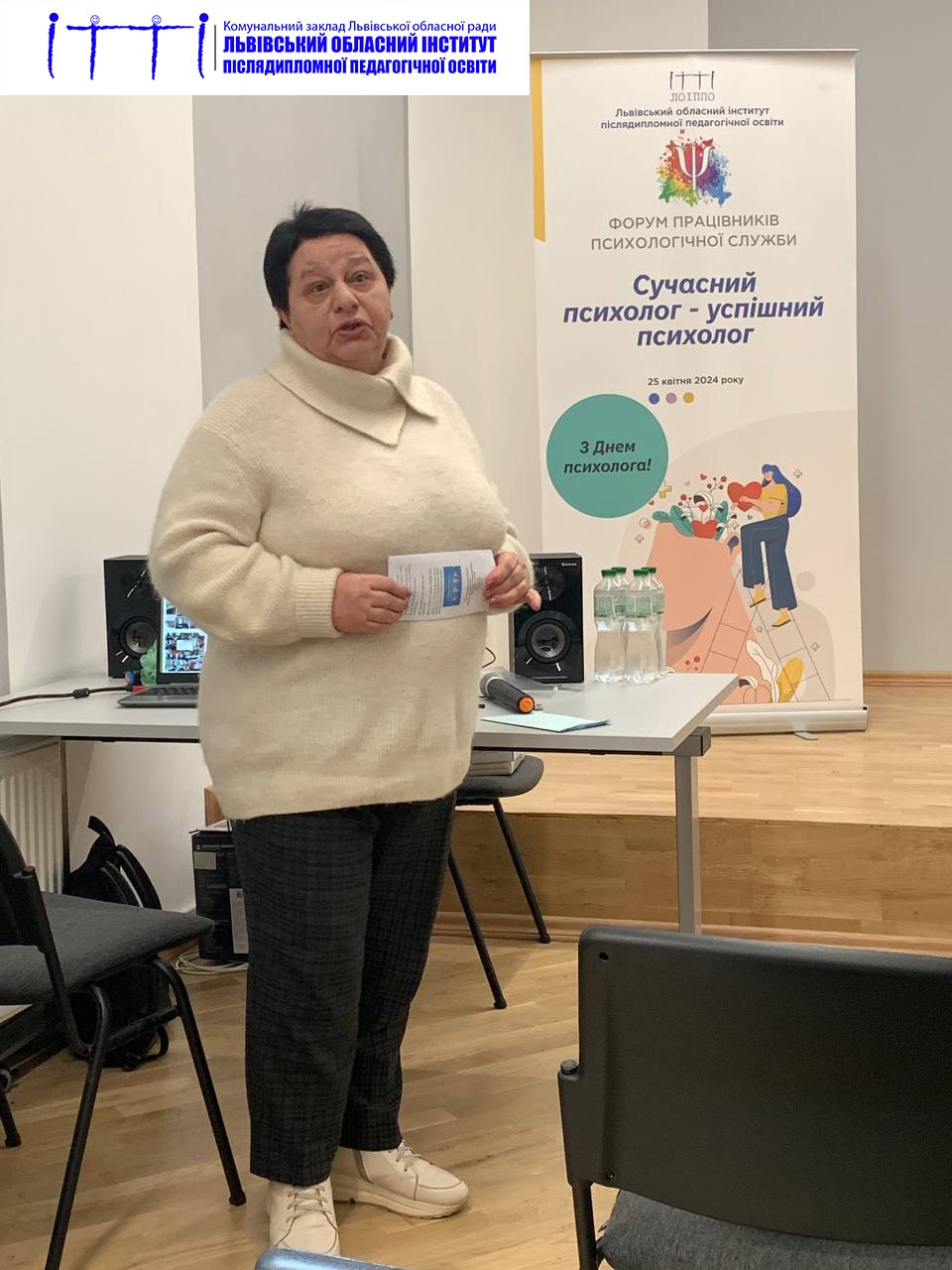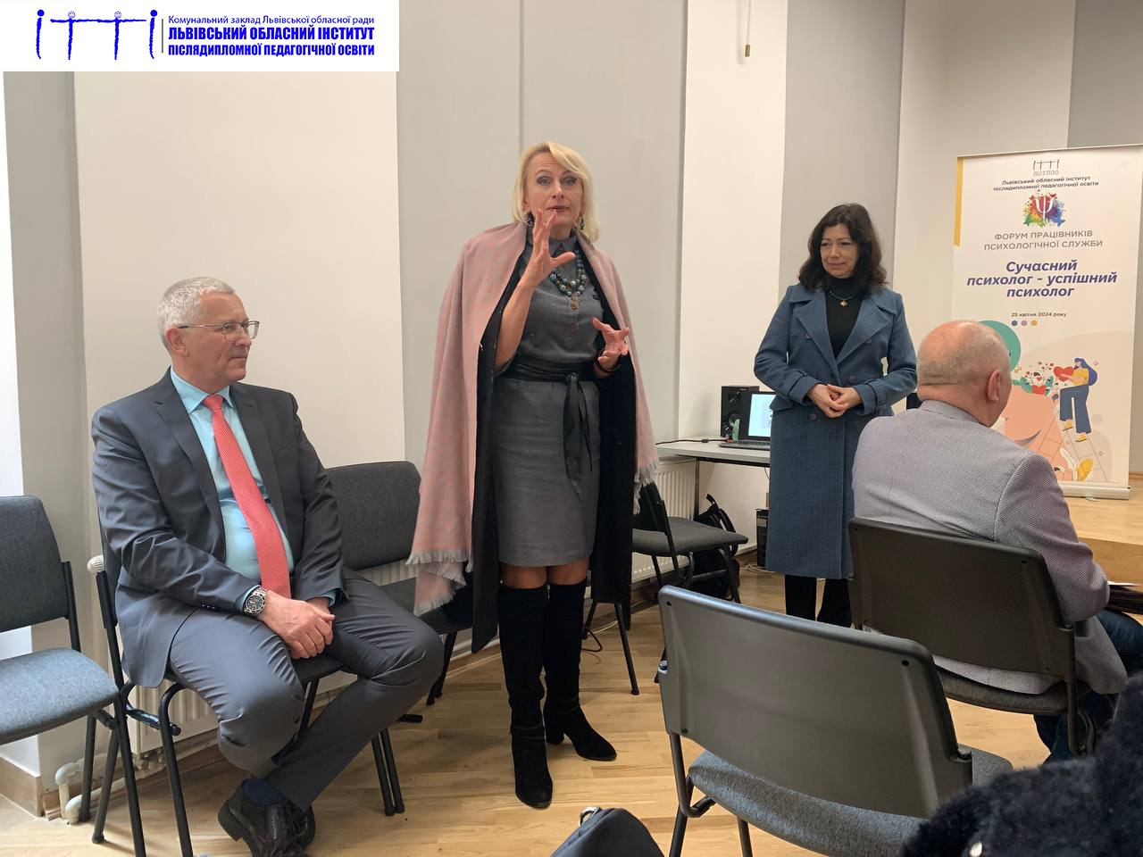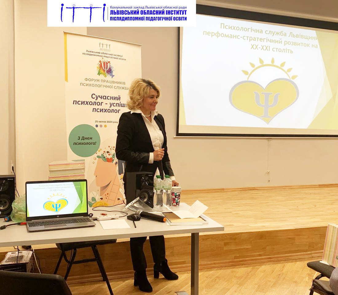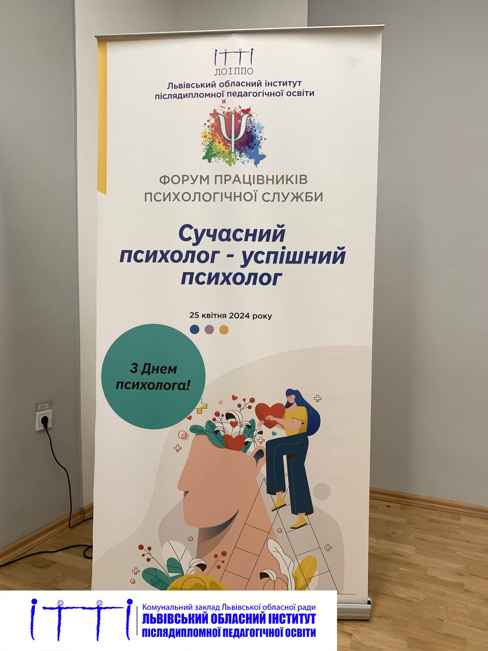 25 квітня 2024 року у Львівському обласному інституті післядипломної педагогічної освіти відбувся Форум працівників психологічної служби Львівської області «Сучасний психолог – успішний психолог», присвячений Всеукраїнському дню психолога.