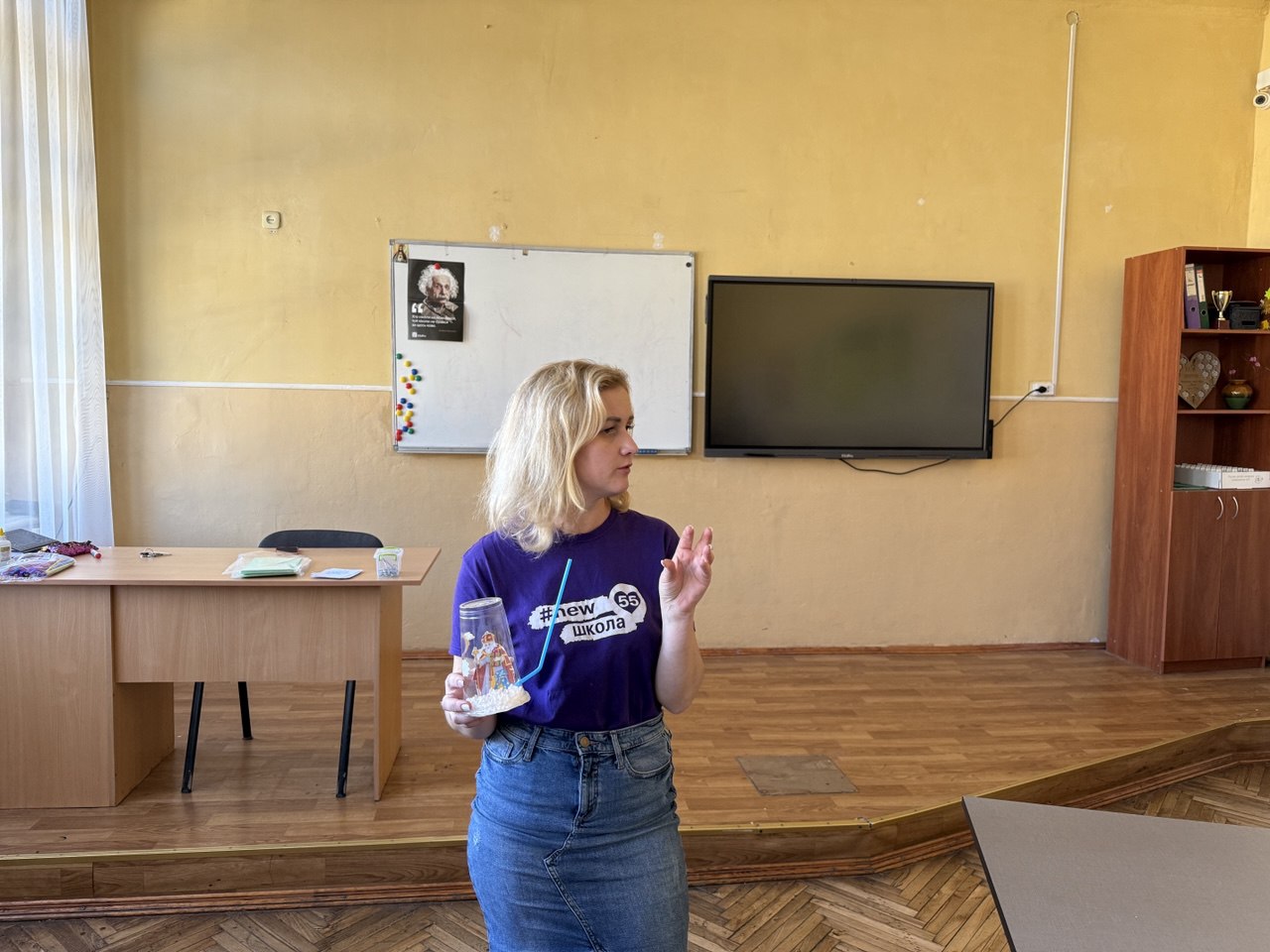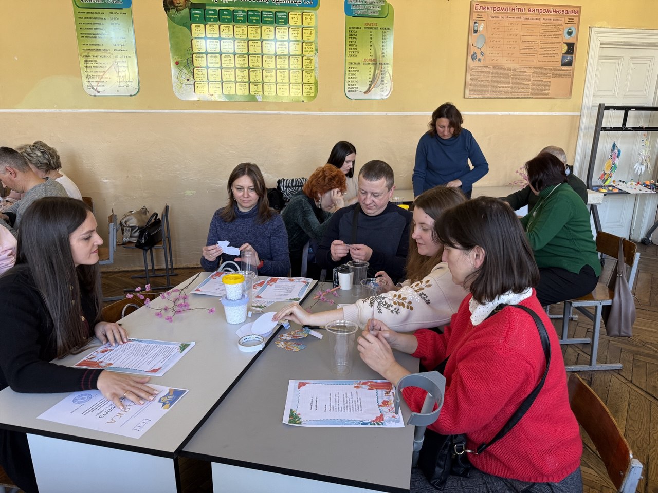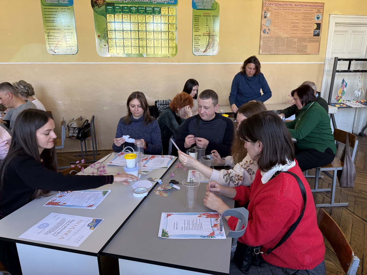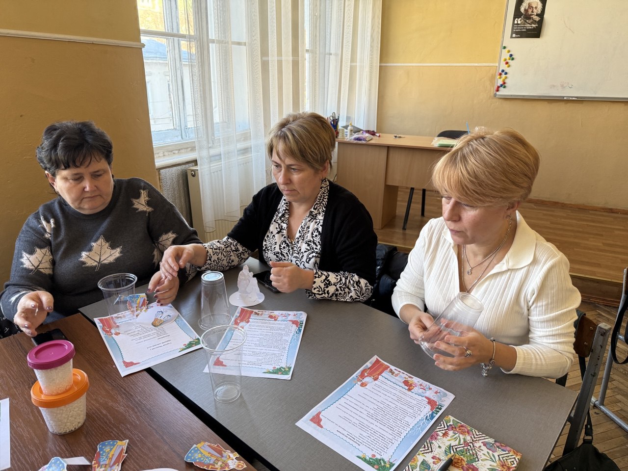 Після круглого столу учасники долучилися до трьох майстер-класів. Людмила Зарванська, учителька СЗШ №55, провела захопливі практикуми «Таємне послання» та «Сакура з парафіну». Оксана Гладьо, методистка кабінету координації впровадження НУШ ЛОІППО, запросила педагогів створити святковий виріб на майстер-класі «Святий Миколай у чарівній сніговій кулі».