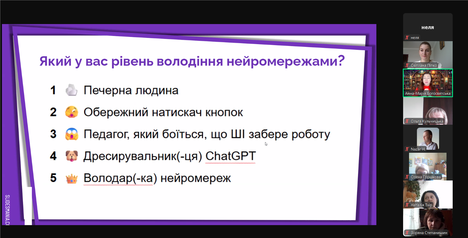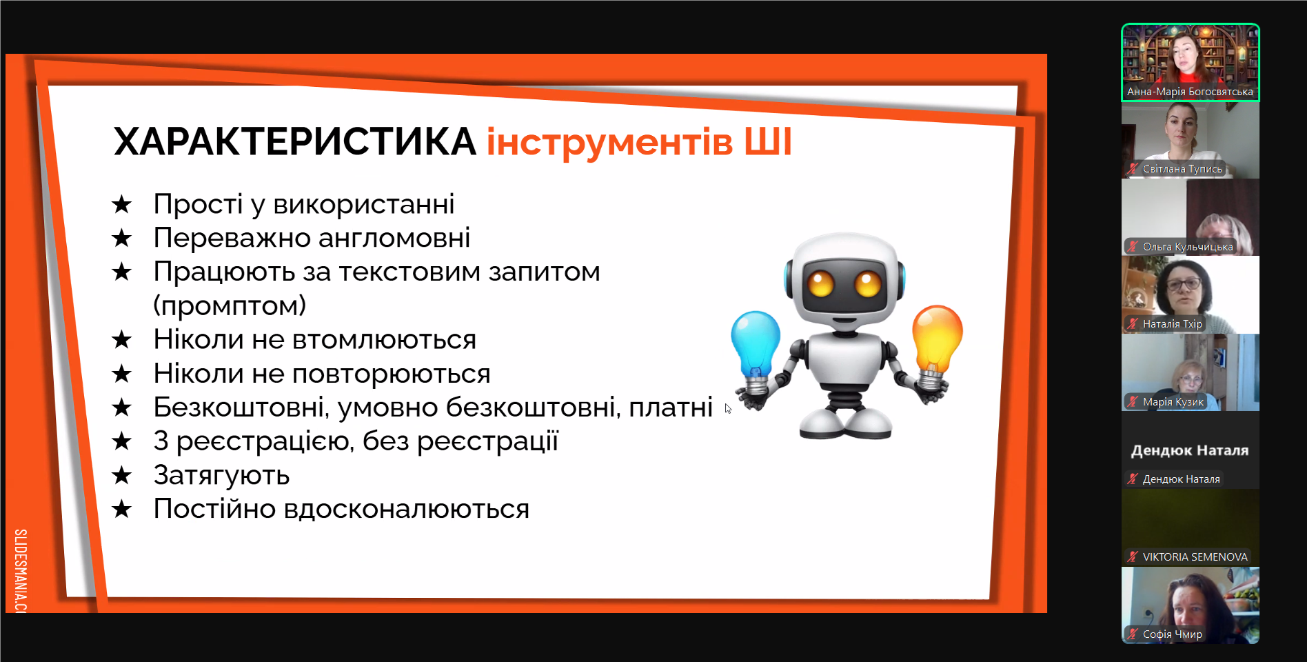 Анна-Марія Богосвятська, завідувачка кафедри гуманітарної освіти ЛОІППО, кандидатка філологічних наук, яка проводила семінар, звернула увагу педагогів, що сьогодні відбуваються трансформації в системі освіти, пов’язані з появою інструментів штучного інтелекту, здатністю опанування нейромережами персоналізоване навчання та генерування різних видів навчального контенту.