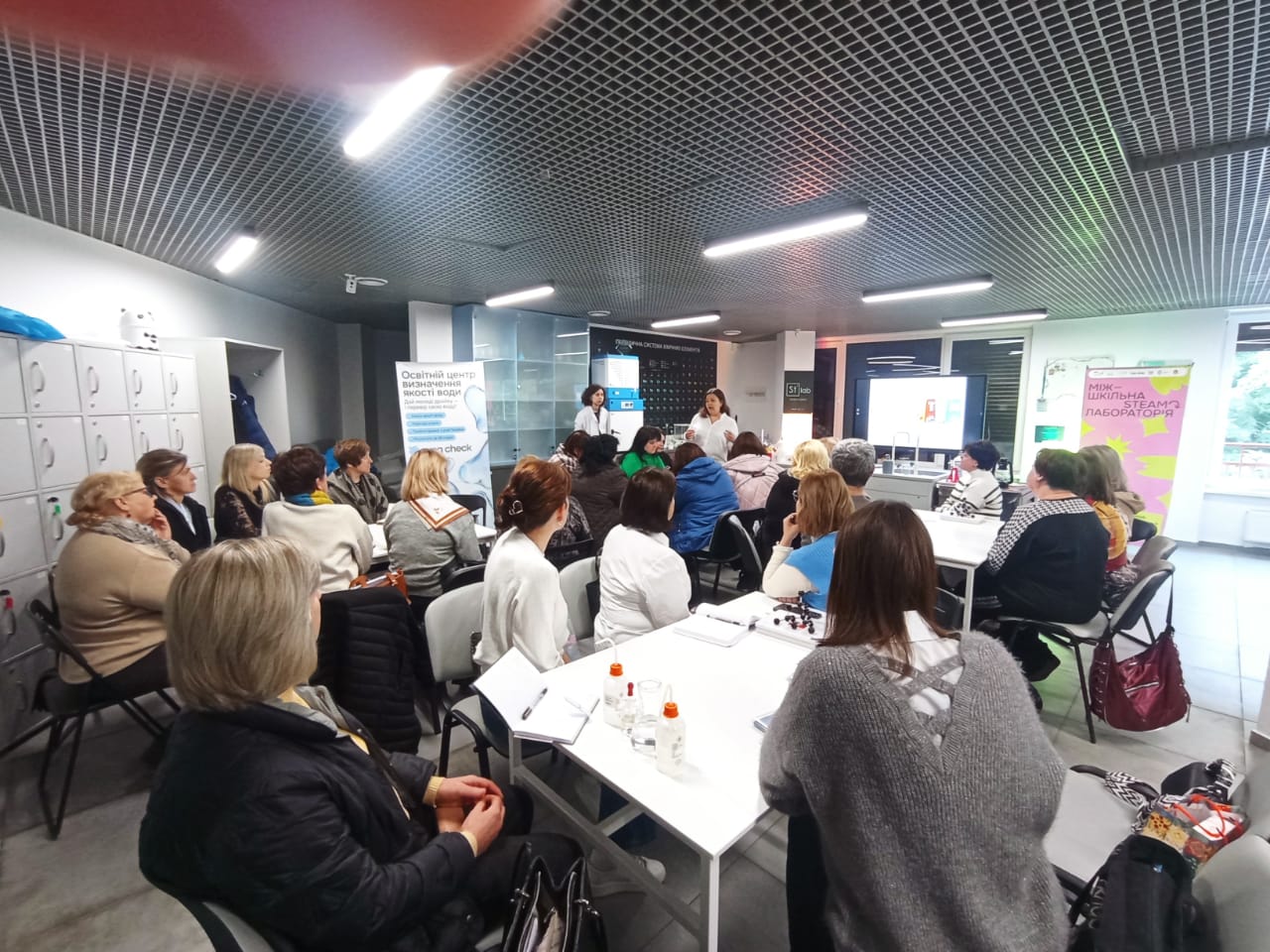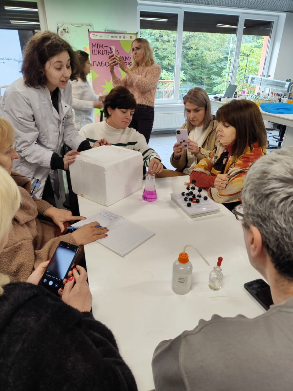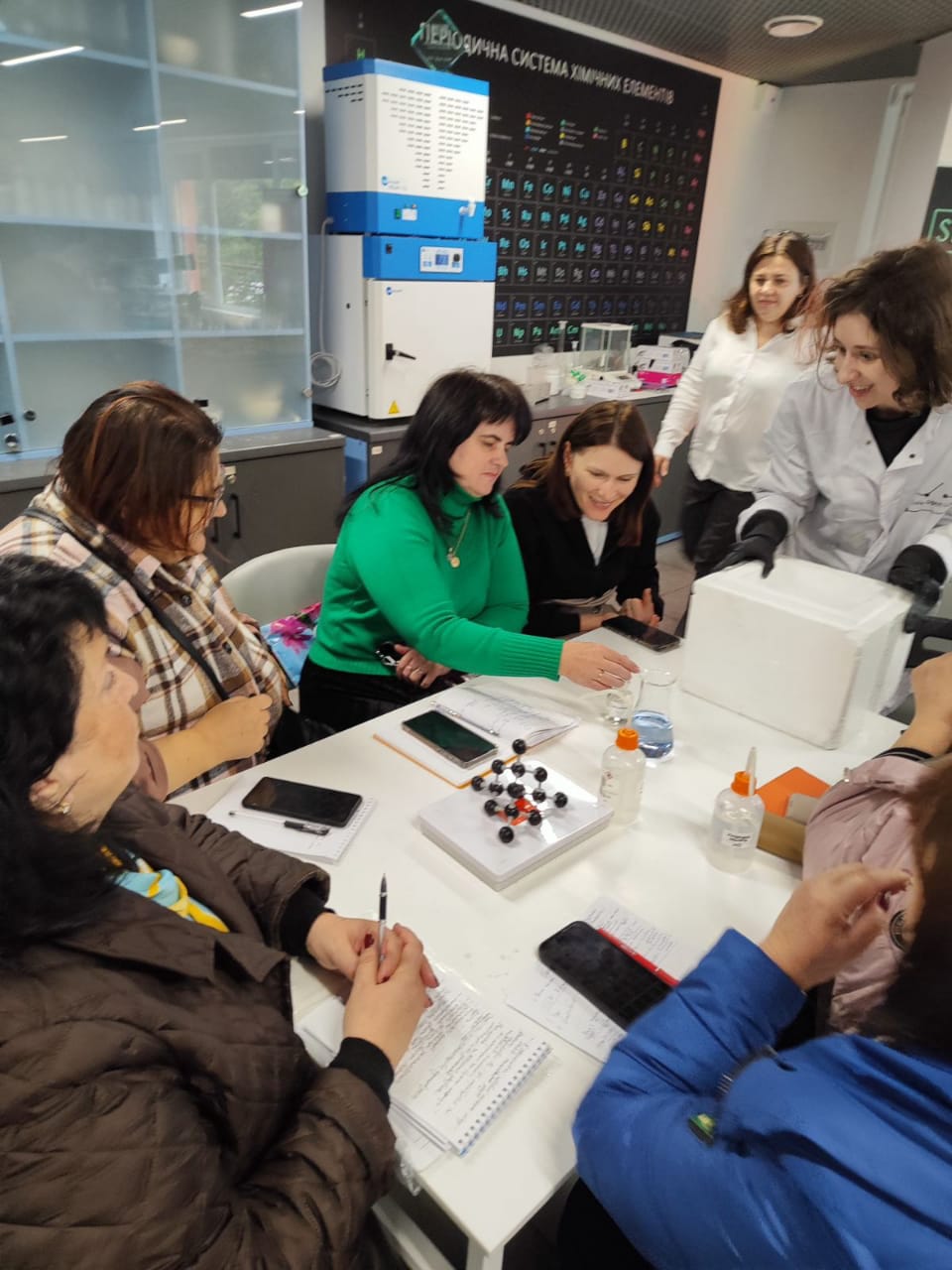 Учителі хімії мали нагоду спільно з Миколою Лехновським, керівником STEAM-лабораторії Lviv Open Lab, Наталею Муць, кандидаткою хімічних наук, доценткою кафедри неорганічної хімії Львівського національного університету імені Івана Франка, та Наталією Журіною, студенткою хімічного факультету цього ж університету, провести низку навчальних досліджень.